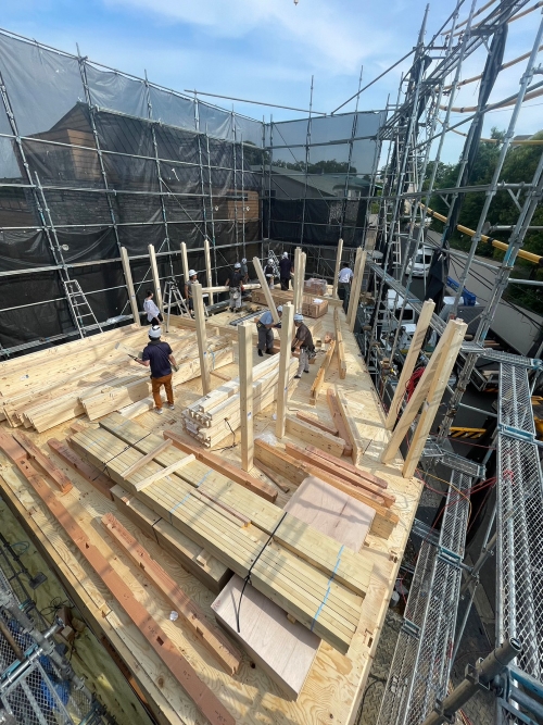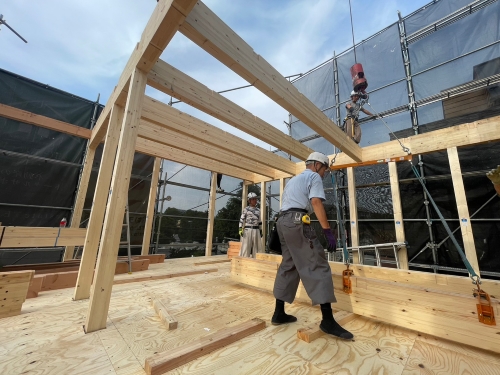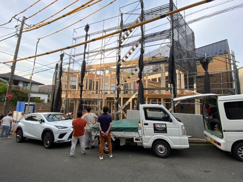 先週の6/7(水)と6/8(木)は、岡本で施工中の新築工事の建て方の手伝いに行ってきました。