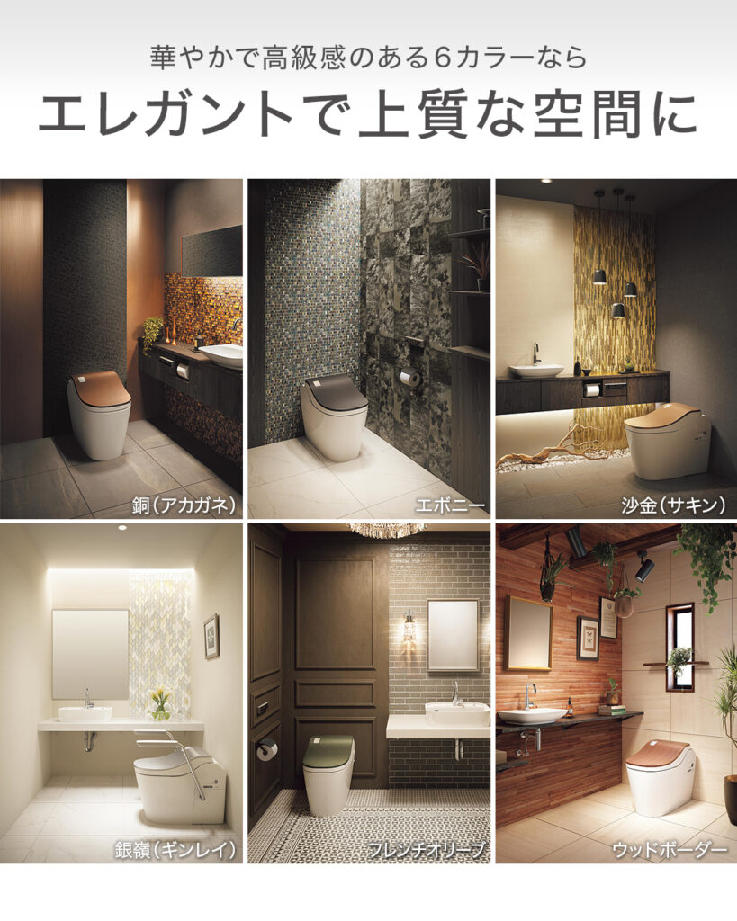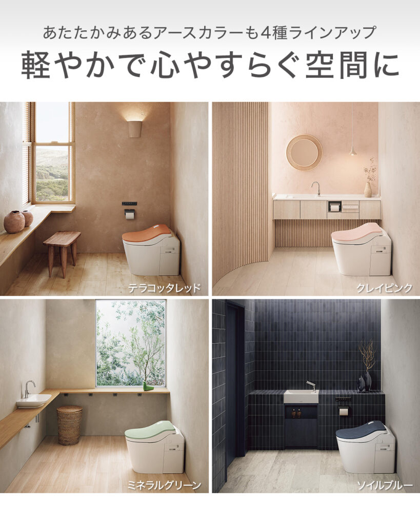 全10柄の豊富なカラー便フタが多彩なインテリアテイストにマッチするうえ、タンクレスなのでスッキリとした空間に仕上がります。