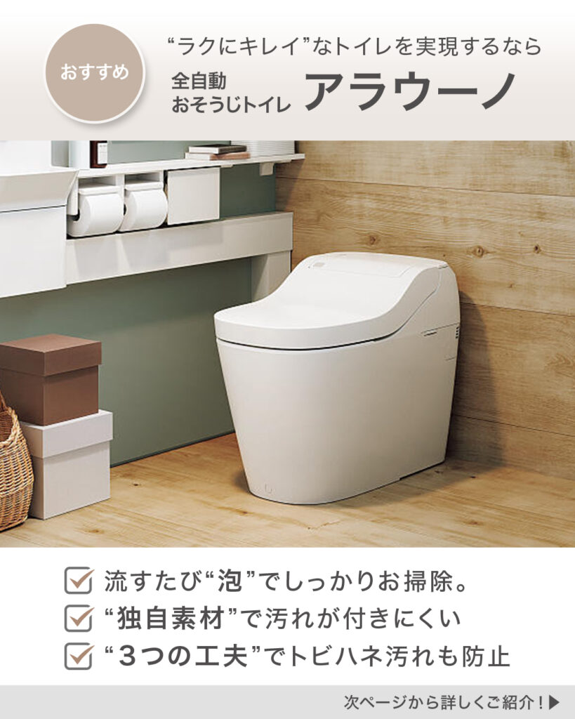 キレイなトイレ空間をラクにキープしたいなら、パナソニックの全自動おそうじトイレ「#アラウーノ」がおすすめ。