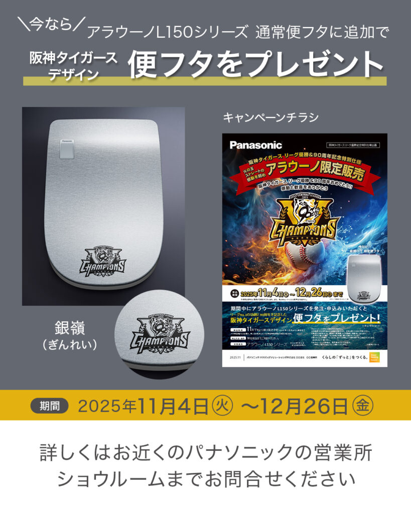 さらに今なら、豊富な便フタカラーで空間を彩ることができる「#アラウーノL150」に、阪神タイガースとのコラボレーションデザインが登場中。