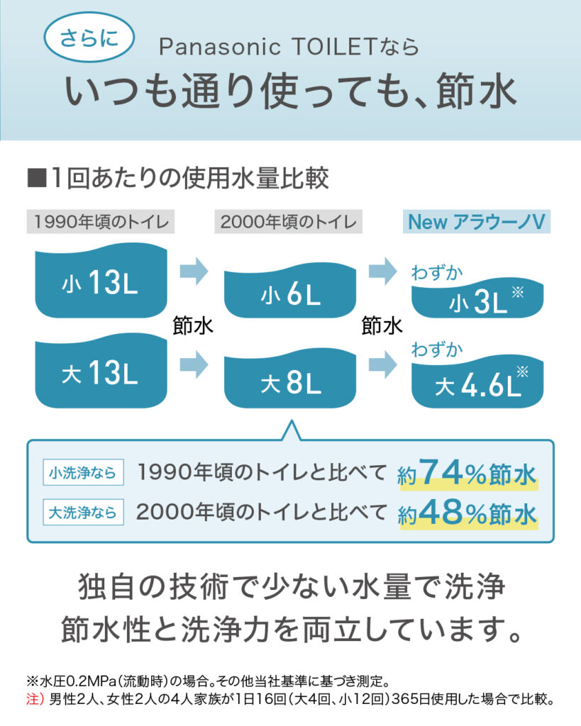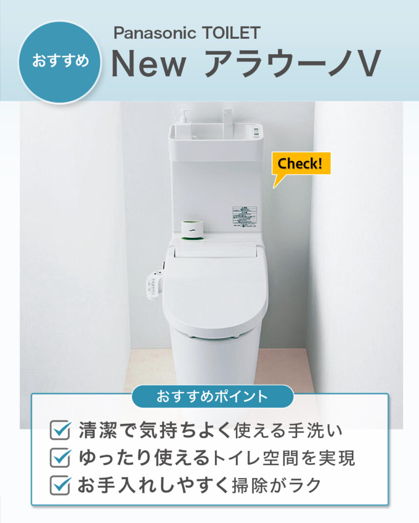 ハンドソープも使えるトイレ手洗いが一体になった「#PanasonicTOILET 」の「#NewアラウーノV 」なら、タンク付きのトイレよりもコンパクトで、手洗いを別で設置する必要もないので、ゆったりひろびろとしたトイレ空間を実現可能。