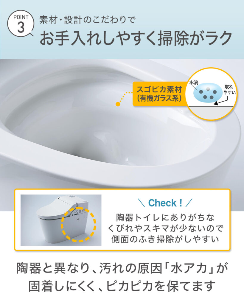 さらに、パナソニック独自の「#スゴピカ素材 」を採用しているので、汚れの原因となる水アカが付着しにくくお手入れもラク。