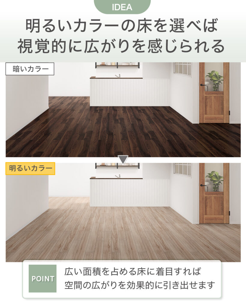 ■明るいカラーの床を選べば、視覚的に広がりを感じられる