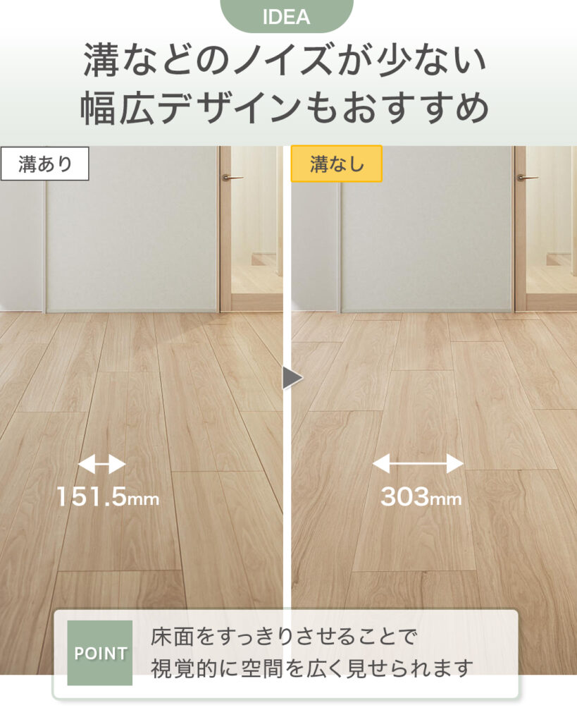 「#ベリティスフロアー 」には、中央の溝がない「#ワイド 」デザインもラインアップ。