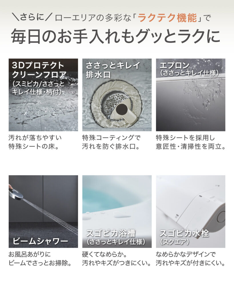 さらに、掃除が大変なローエリアには、パナソニックならではの“ラクテク機能”も多数搭載。