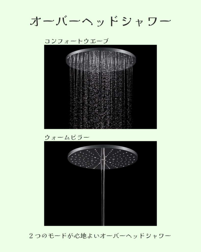 オーバーヘッドシャワーなどが特徴としてあります。