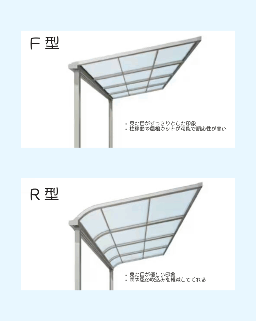 屋根の形状はF型とR型に分かれています。