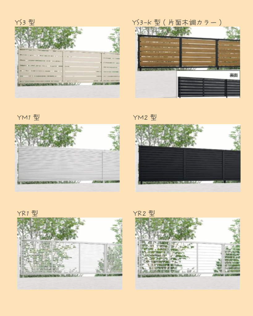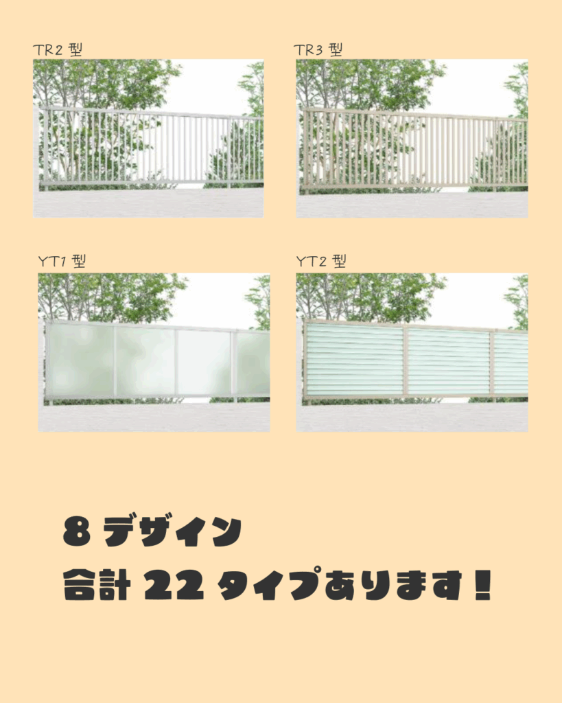 フェンスABは、完全目隠しから格子タイプまで8デザイン22タイプと