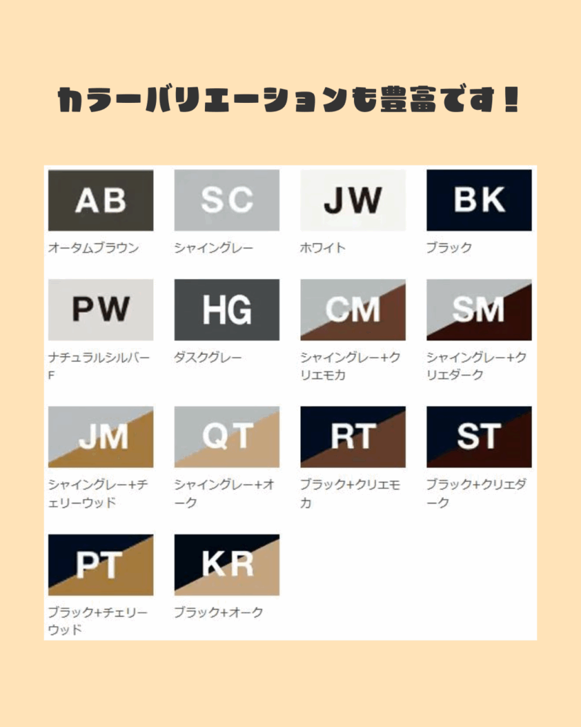 アルミ形材色と、木目調のラッピング材を施したラッピング形材色を選ぶことができます。