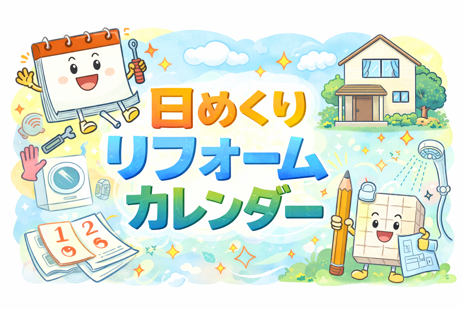 などなど、日常生活の中で「これ便利かも!」と思えるリフォームアイデアを、イラストとともに分かりやすく紹介しています日めくりリフォームカレンダー。