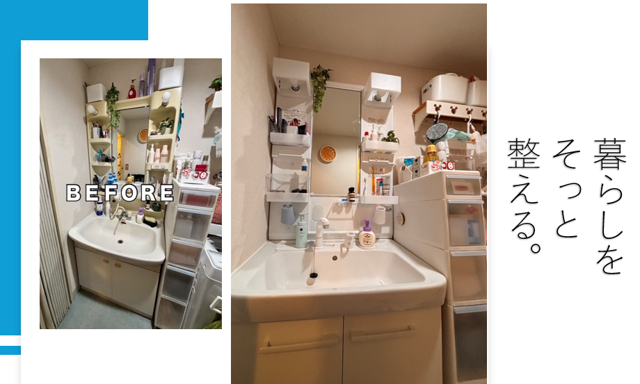 心配していたクロスの色の違いも、収納グッズに隠され目立ちませんでした。