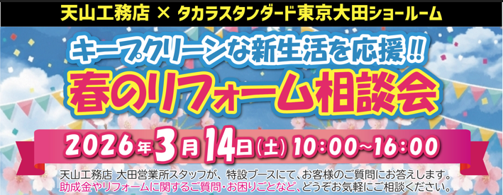 【大田区 リフォーム】タカラスタンダード東京大田ショールームで「春のリフォーム相談会」開催します!(3/14土)