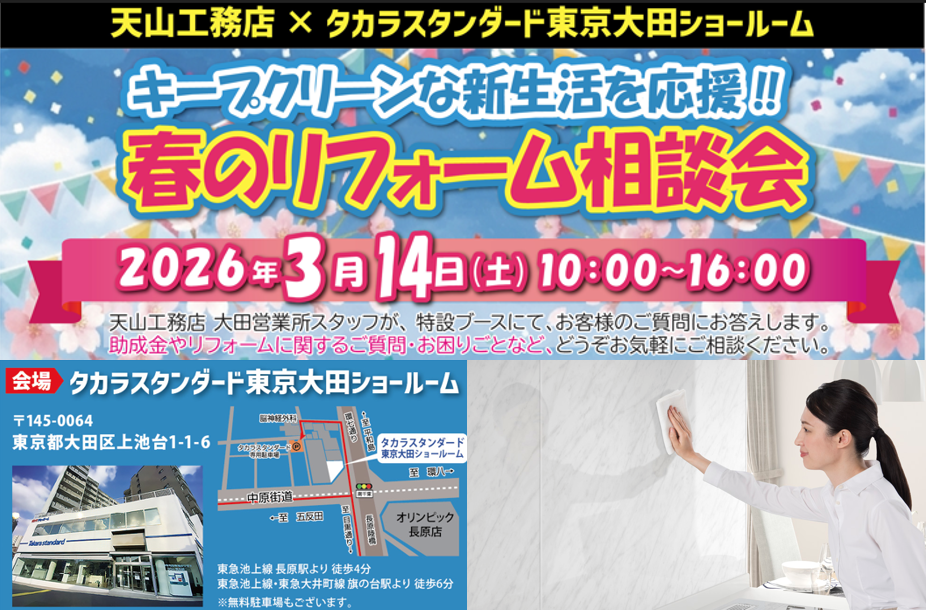 【大田区 リフォーム】3/14 春のリフォーム相談会開催!(キープクリーンな新生活を応援🌷)