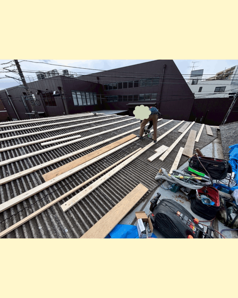 野地板と呼ばれる板を通気用の垂木の上に張っていきます。
