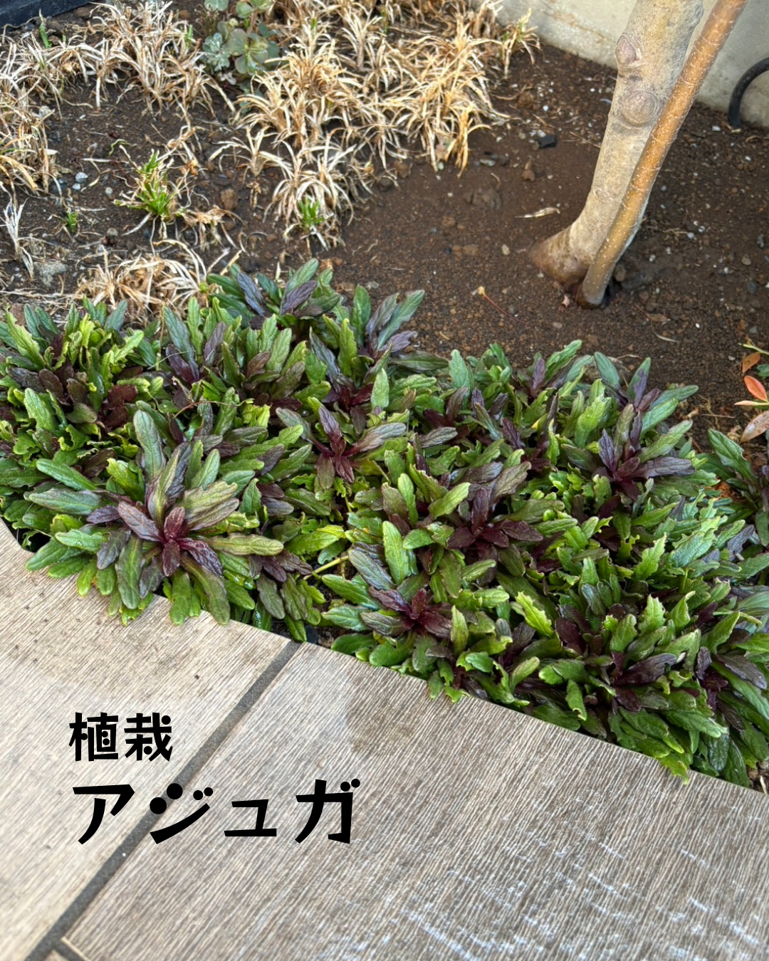 アジュガにもさまざまな品種があり、大田営業所にあるアジュガは