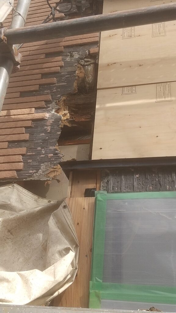 【目黒区・世田谷区・外壁工事】 世田谷営業所, 外壁, 外構工事, 大田営業所, 未分類 2021年10月11日 既存外壁タイル仕上げ解体雨漏りで中が腐食梁の部分も腐食していました。補強 断熱材も入れ替えました。間柱も補強防水シート貼りフェルトを貼ってラス網施工。 雨漏りの原因は外壁の防水シートを貼らずに施工していたみたいです。購入されて30年近くになるみたいですが 恐ろしいです。引き続きモルタル施工、塗装までの様子を次回またお送りいたします。