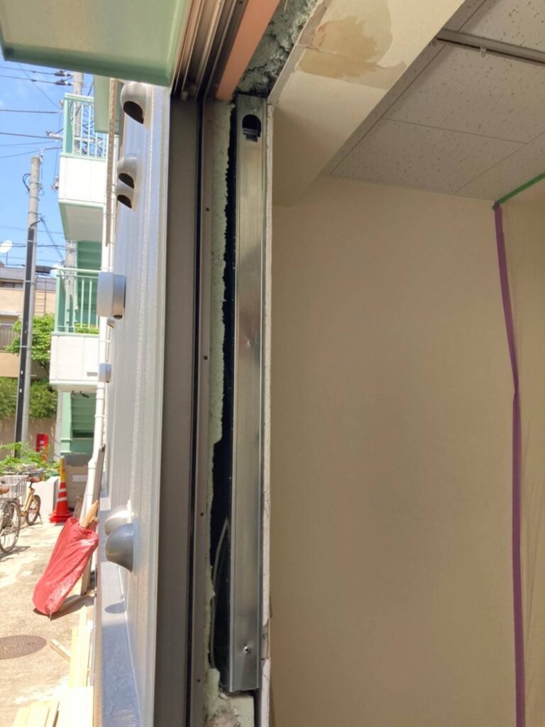 【目黒区内装工事】 サッシ, リフォーム, 内装, 内装工事, 塗装工事, 壁紙(クロス)・床材(CF), 大田営業所, 施工前, 施工後, 木枠 2023年5月18日 雨漏りが原因で枠が腐食、まずは外部コーキングと外装工事を行いました、しばらく様子を見て雨漏りが収まりましたので内装工事枠を交換致しました。お写真ご覧ください。 既存枠腐食 既存枠腐食 解体撤去 枠取付け 枠塗装 クロス工事 完成