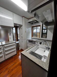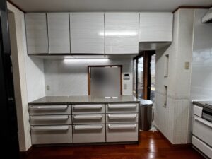 こちら築20年弱になりますがキッチンとカップボード そしてキッチンへの動線(廊下からキッチンへ新規扉)