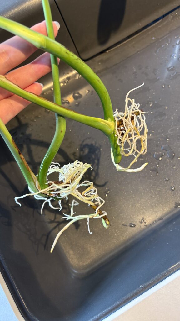 モンステラから伸びている「木根」と呼ばれている部分から新しい根っこが出てくるので