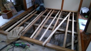 世田谷区東玉川I邸 和室荒床張替工事 内装工事, 大田営業所, 工事現場, 施工前, 施工後 2016年6月13日 現場の様子をお届けします。 和室の畳がブカブカするから直してほしいとの御依頼をいただきまして、現場に行ってまいりました。 畳の下の荒床が薄く、年月が経って劣化していました。 工事の内容は、根太の補強と荒床の張替です。 とても立派な和室です。 畳をおこして既存の荒床をはがします。 根太を補強して こんな感じ ベニヤを敷いて畳を並べて完了です。 最近では洋室が多いですが、和室の修繕もしっかりやります。 ご要望の際はぜひご連絡ください。 では、また。
