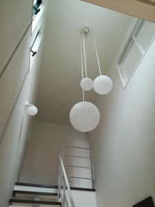 鉄骨階段とペンダント照明がこの物件に対して一番魅力の空間です。
