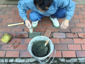 ■タイル屋さんの仕上げ作業(ポストも交換しましたので回りを補修)