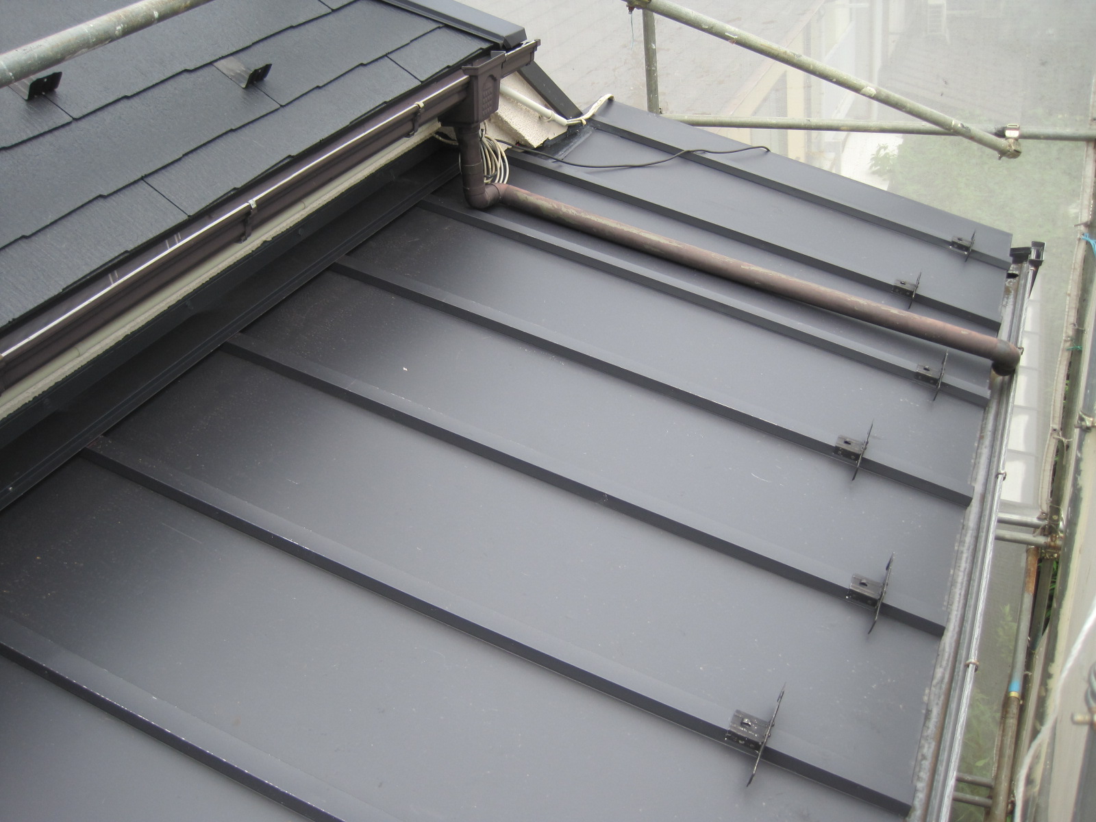 既存の瓦棒屋根(板金屋根)部分も瓦棒の劣化があったため、同時にはがして瓦棒を交換して板金を張りなおしました。